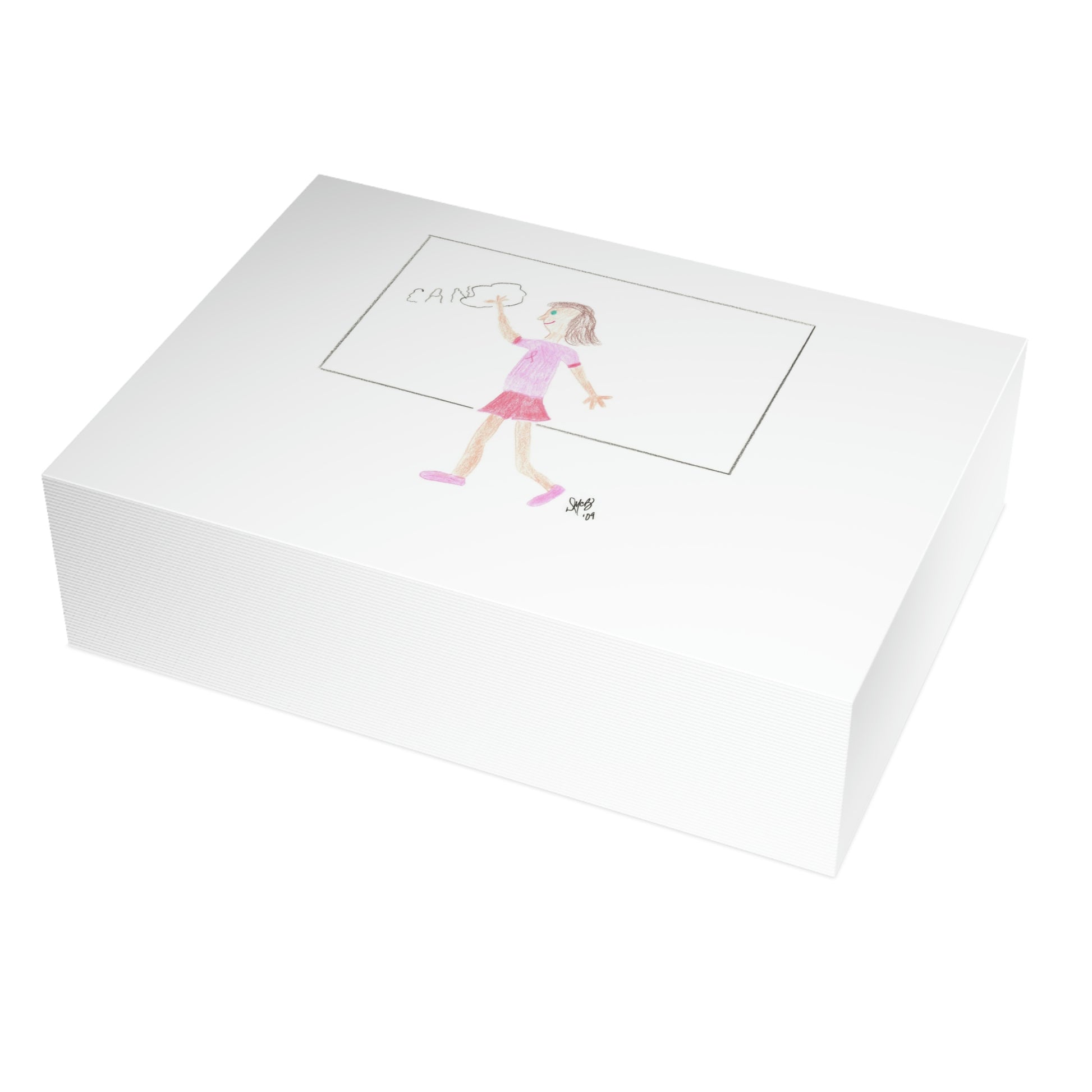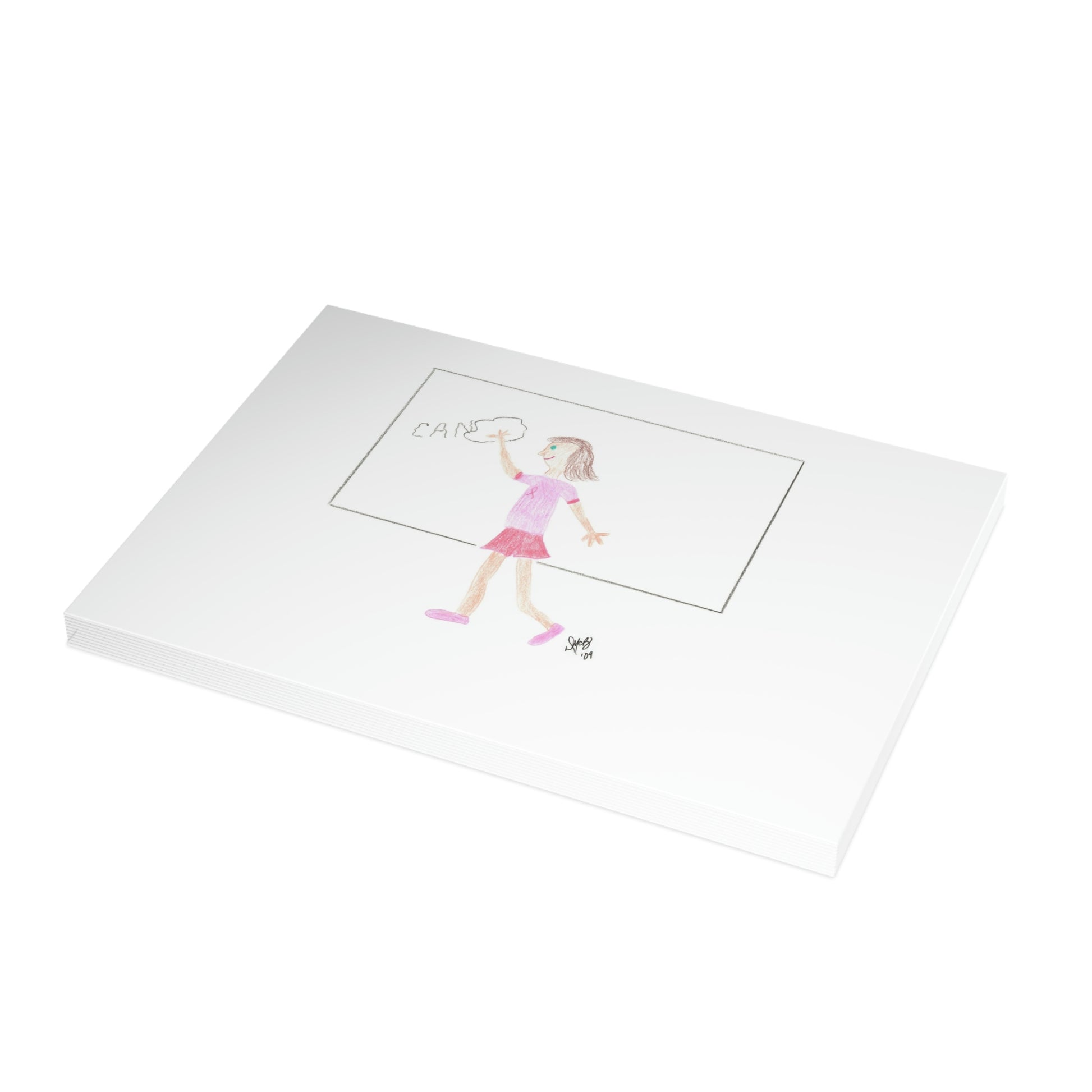 5x7 landscape greeting card – Thank You for Helping Me Wipe Out Cancer - girl in pink erasing the word "Cancer" from a white board. This is a great card to give to those who are supporting the cause. They may be supporting monetarily, working in the health/wellness field, they may be volunteering to support fundraisers. No matter their involvement, this is the card to send. Original drawing is colored pencil on paper, scanned in and placed on the card.