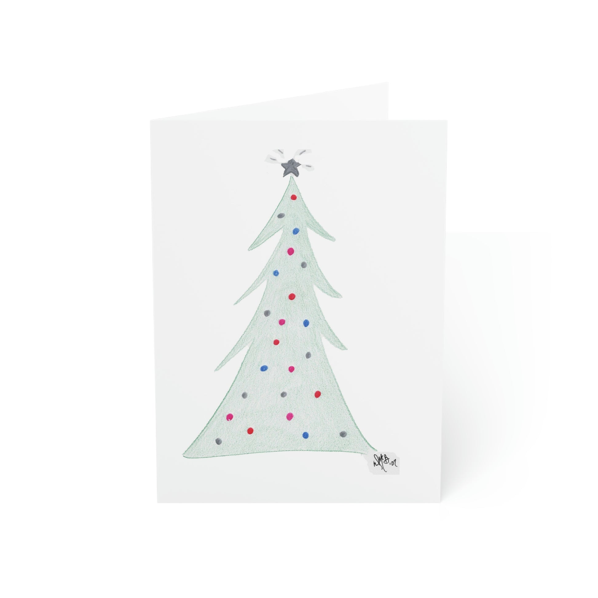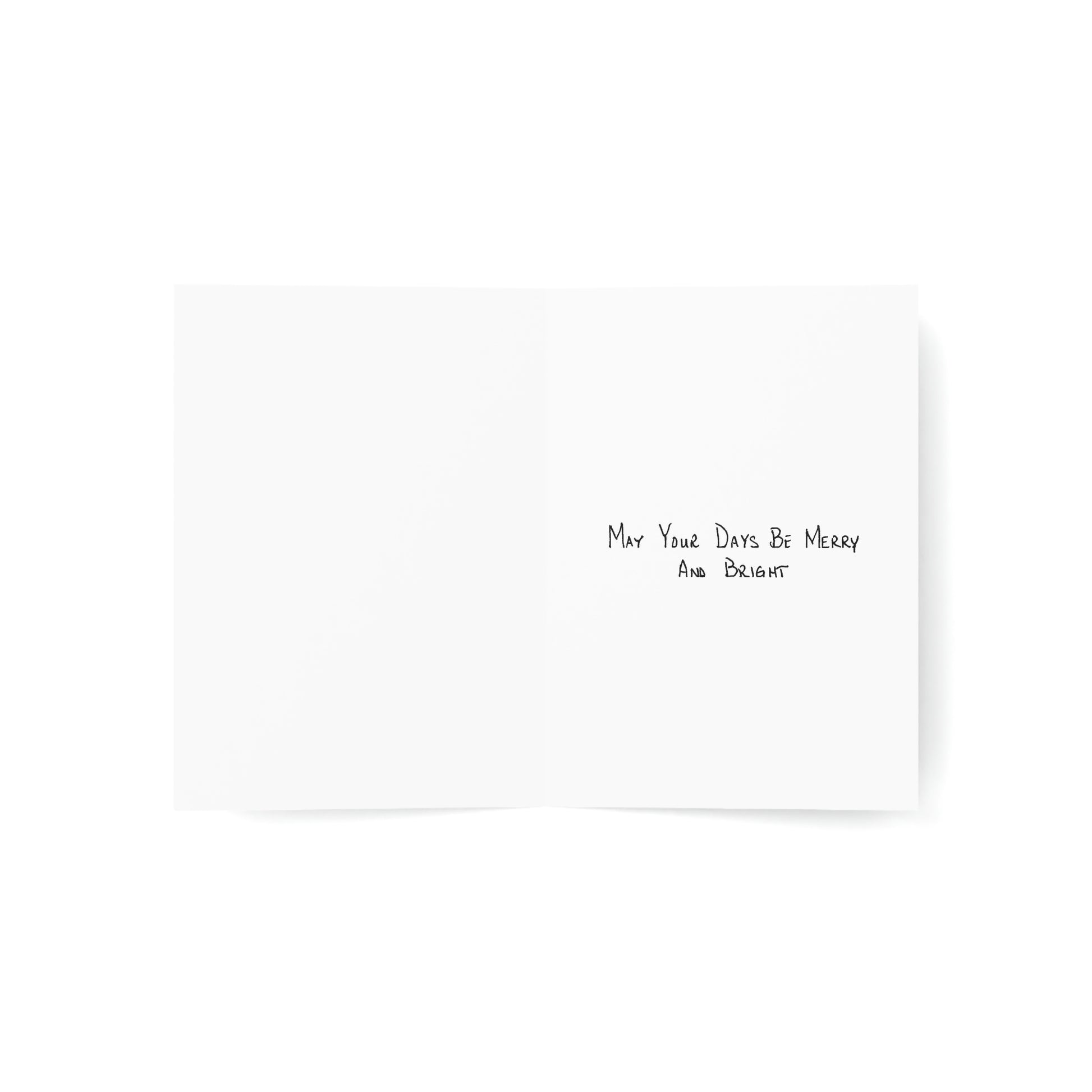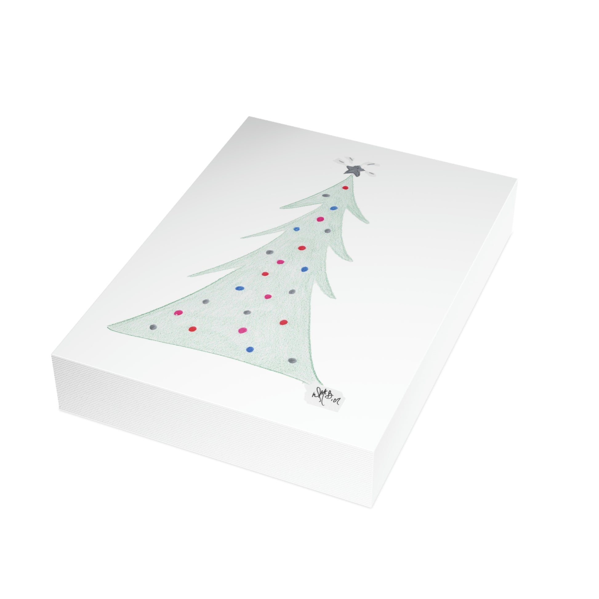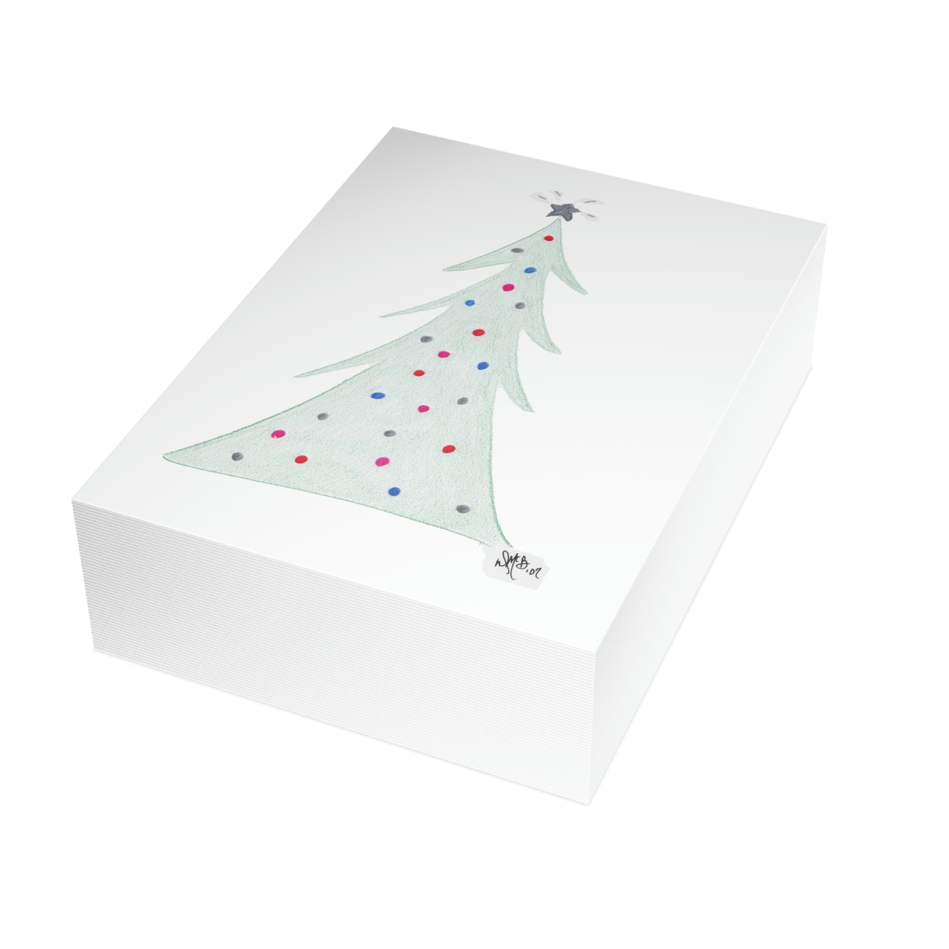 5x7 portrait greeting card – May Your Days Be Merry and Bright - A Christmas tree adorned with ornaments and a shiny silver star at the top. This is a nice card with a nice message. It's good for anyone - families, children, parents, the mail carrier, your hair dresser, the zoo keeper, your rotten kids' frazzled teacher, the possibilities are limitless. Original drawing is colored pencil on paper, scanned in and placed on the card.
