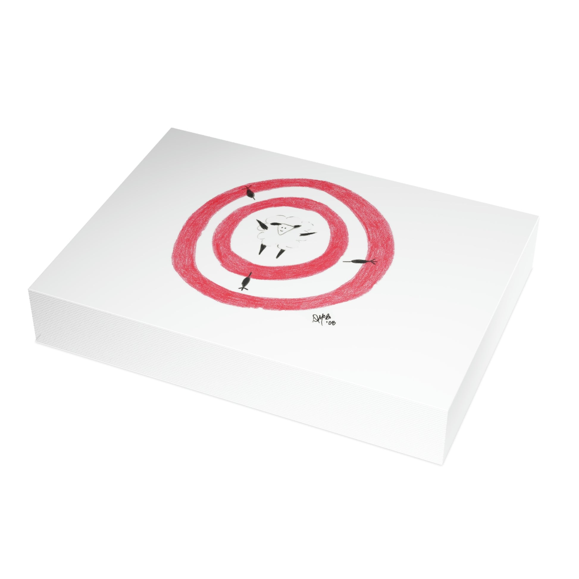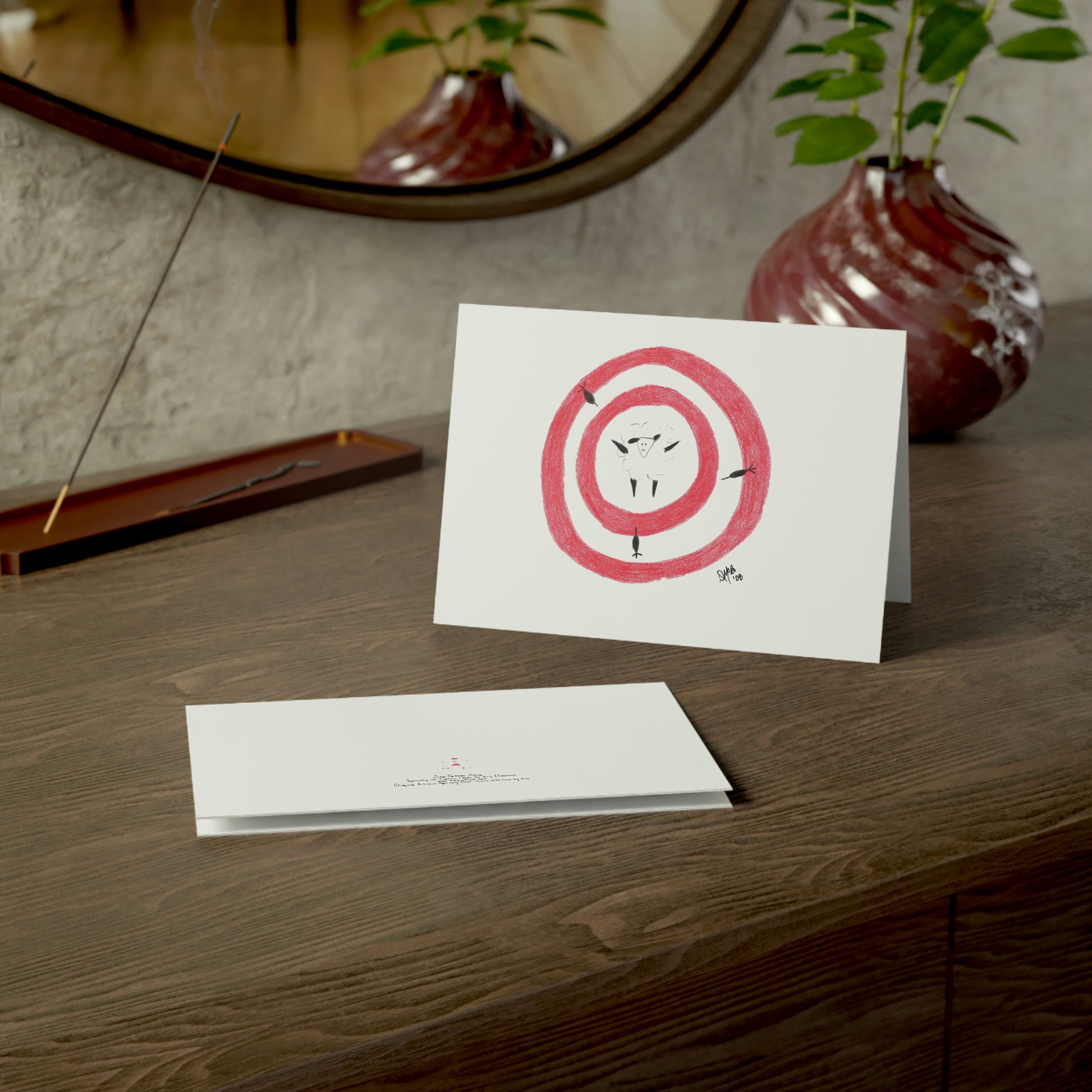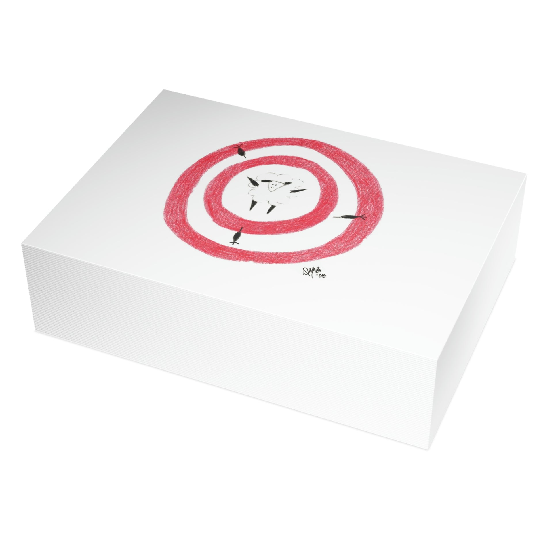 5x7 landscape greeting card – Ewe Will be Missed - A sheep on a dart board with the darts missing it. Great retirement card, or to give a coworker that is moving on in life to a different position or job. Also good for someone moving away. If you're more nefarious, feel free to use it as a breakup card. I won't judge. The person being dumped may, though. Original drawing is colored pencil on paper, scanned in and placed on the card.