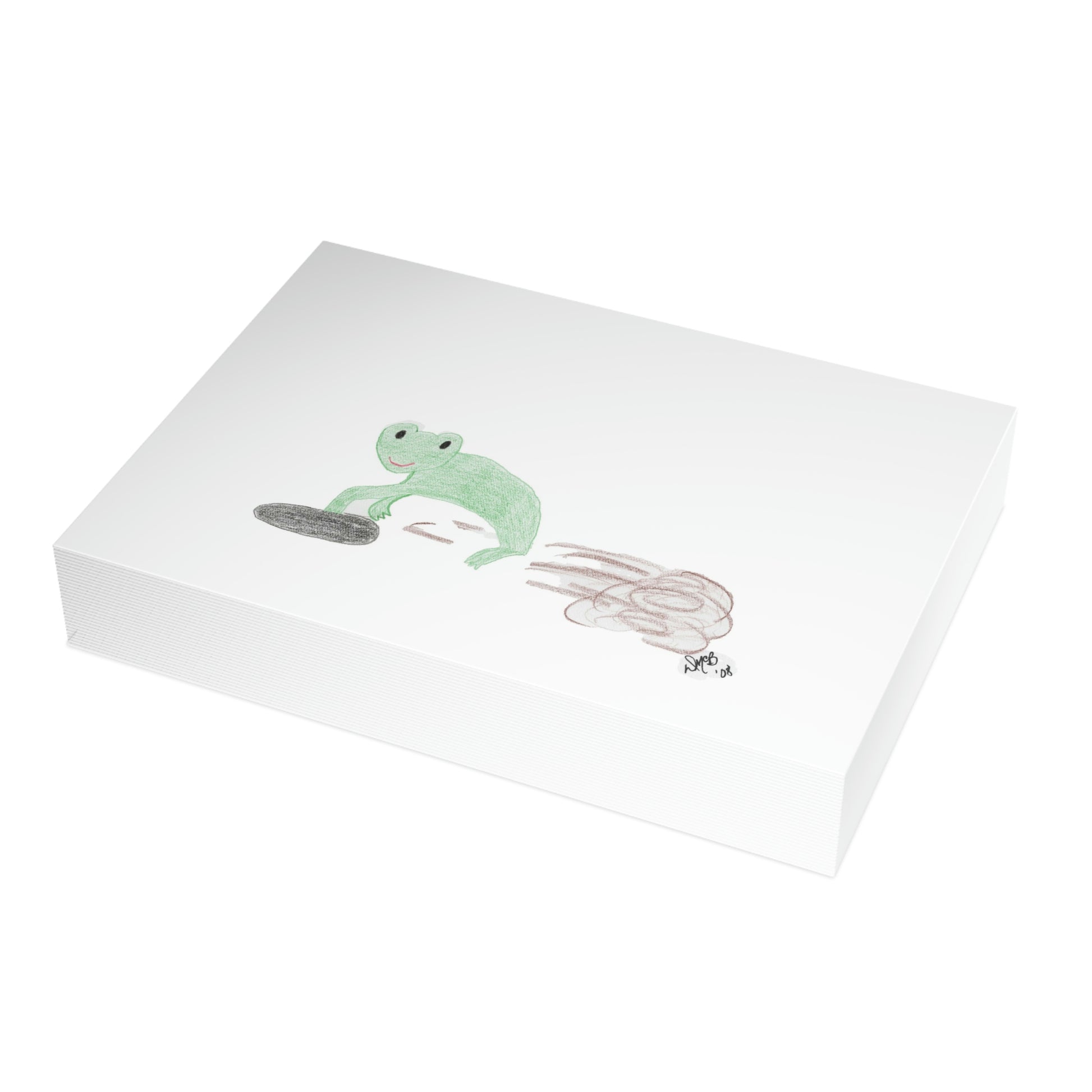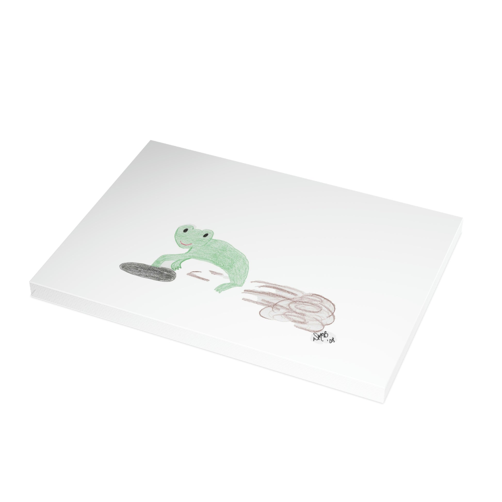 5x7 landscape greeting card - I Toadally Dig You - A toad digging a hole. It's that simple. At least I didn't have him digging someone's guts out - that would be more of a Halloween card. As it is, s/he is digging a hole in the dirt. Original drawing is colored pencil on paper, scanned in and placed on the card.