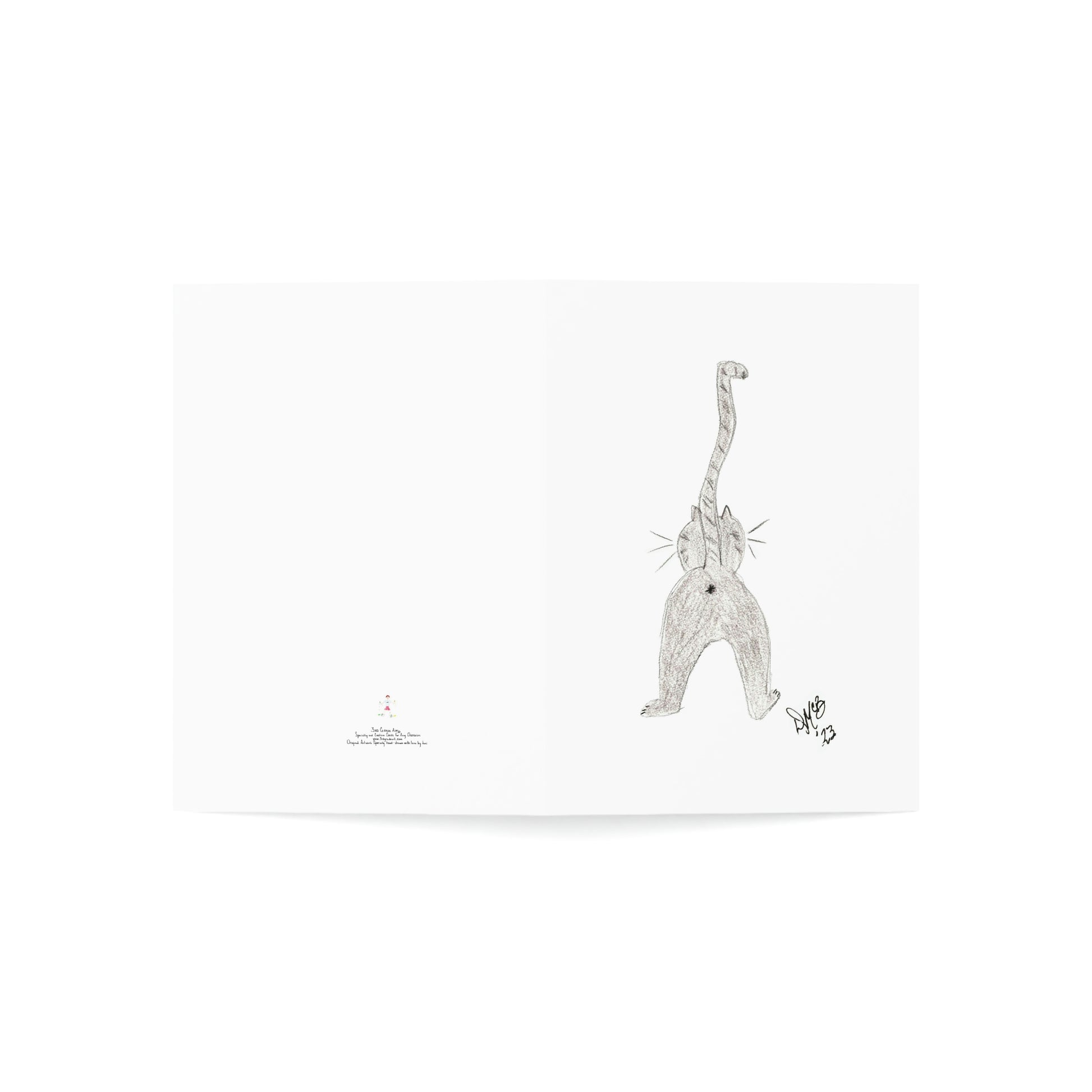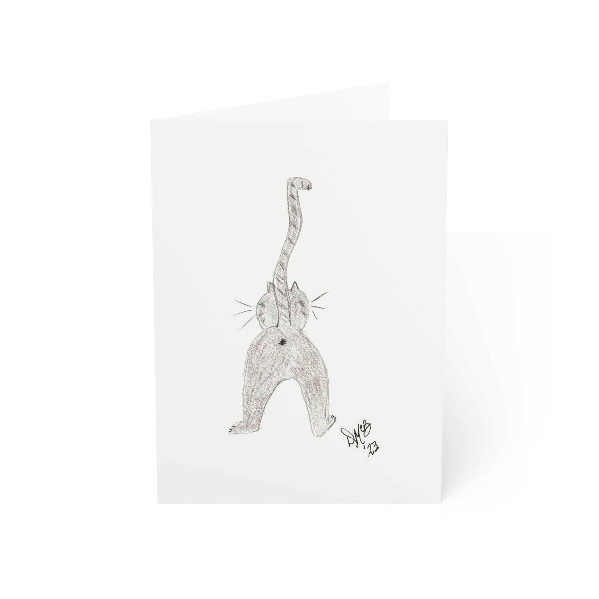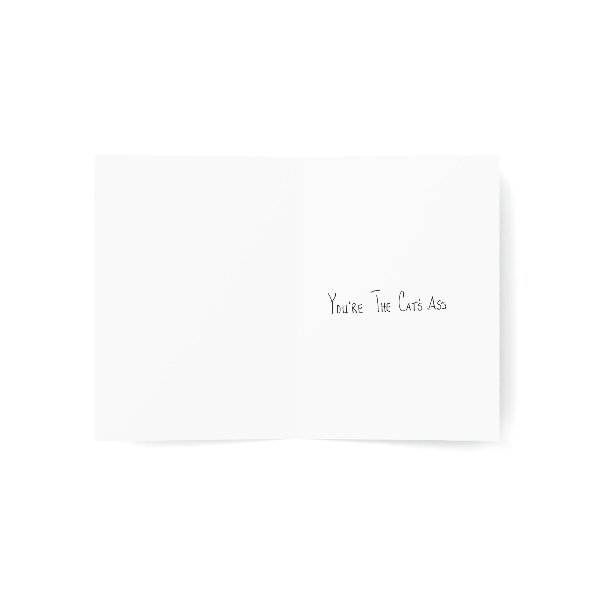 5x7 portrait greeting card – You're the Cat's Ass - A northbound view of a southbound cat showing you his favorite side. I recently found out that "the cat's ass" is actually a good thing! I did not know this, but just had to make a card out of it! Original drawing is colored pencil on paper, scanned in and placed on the card.