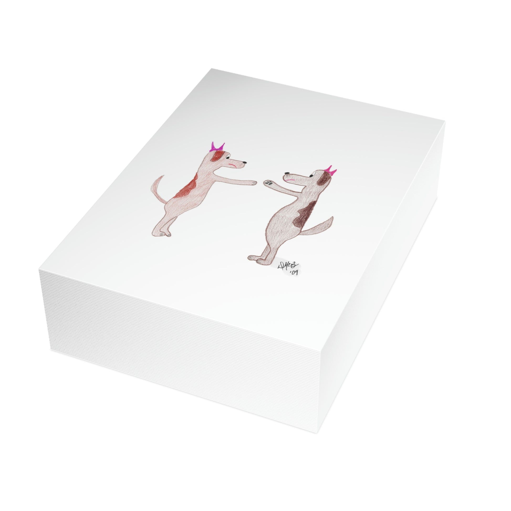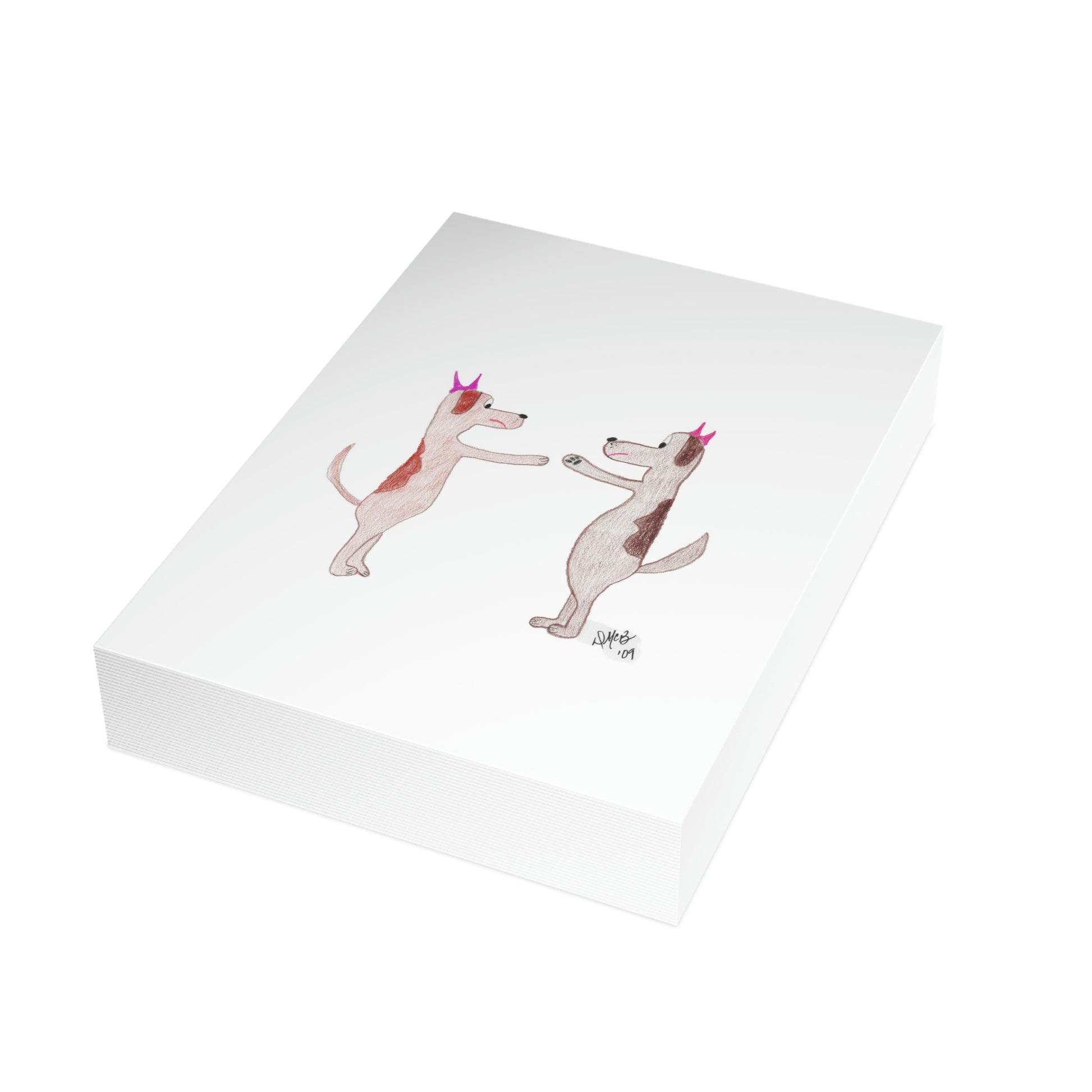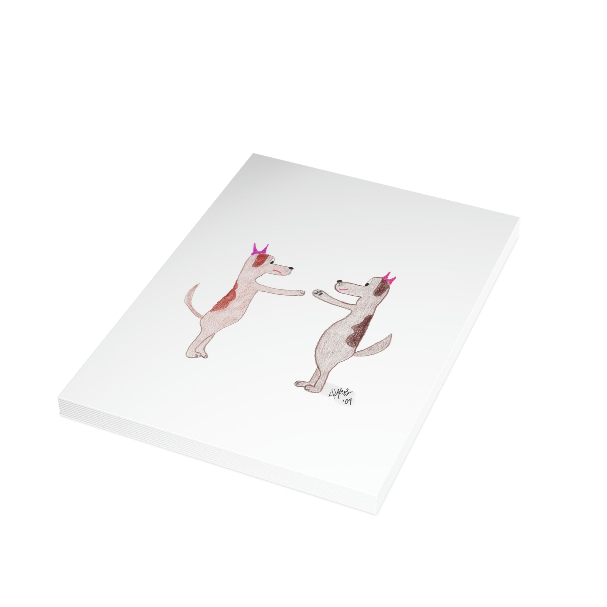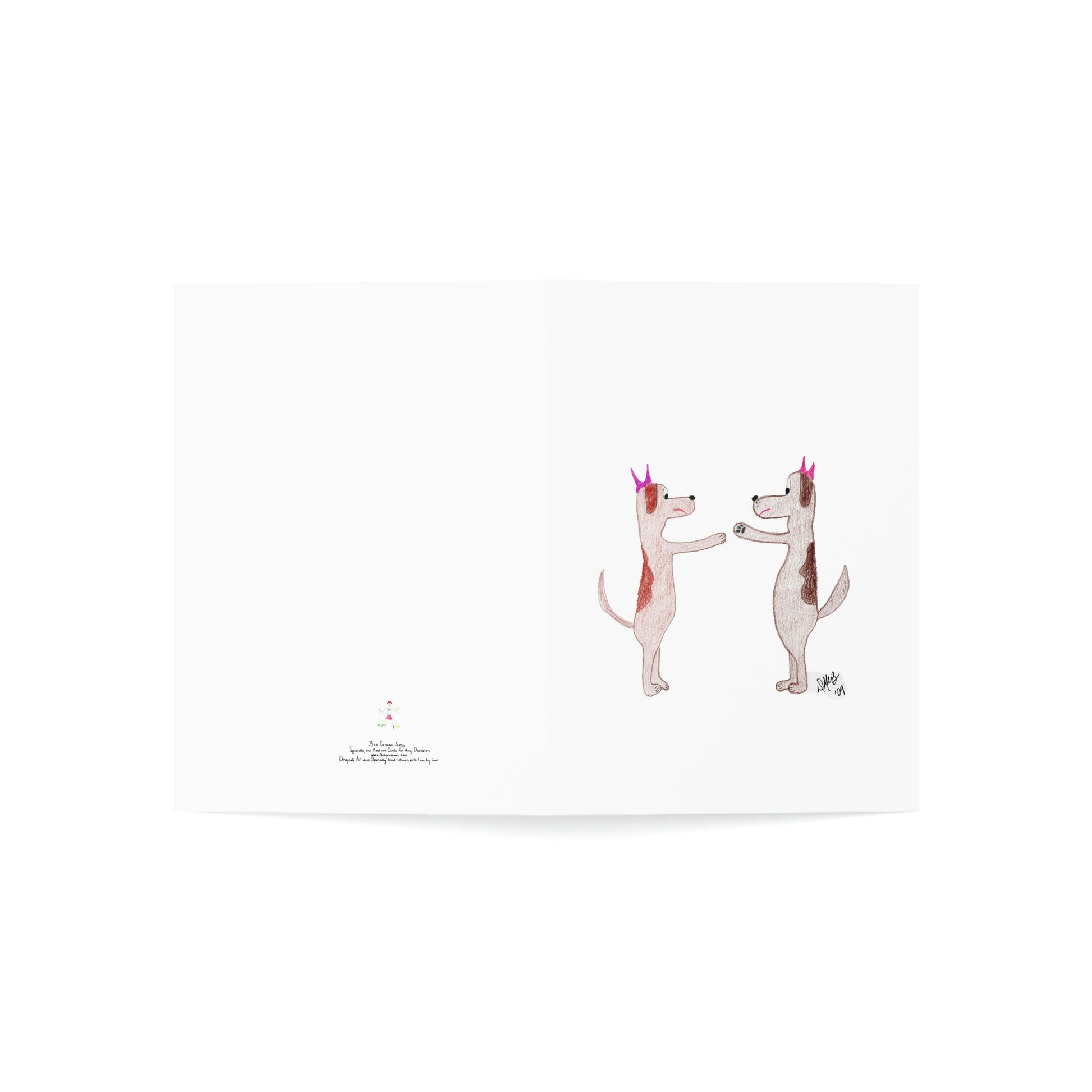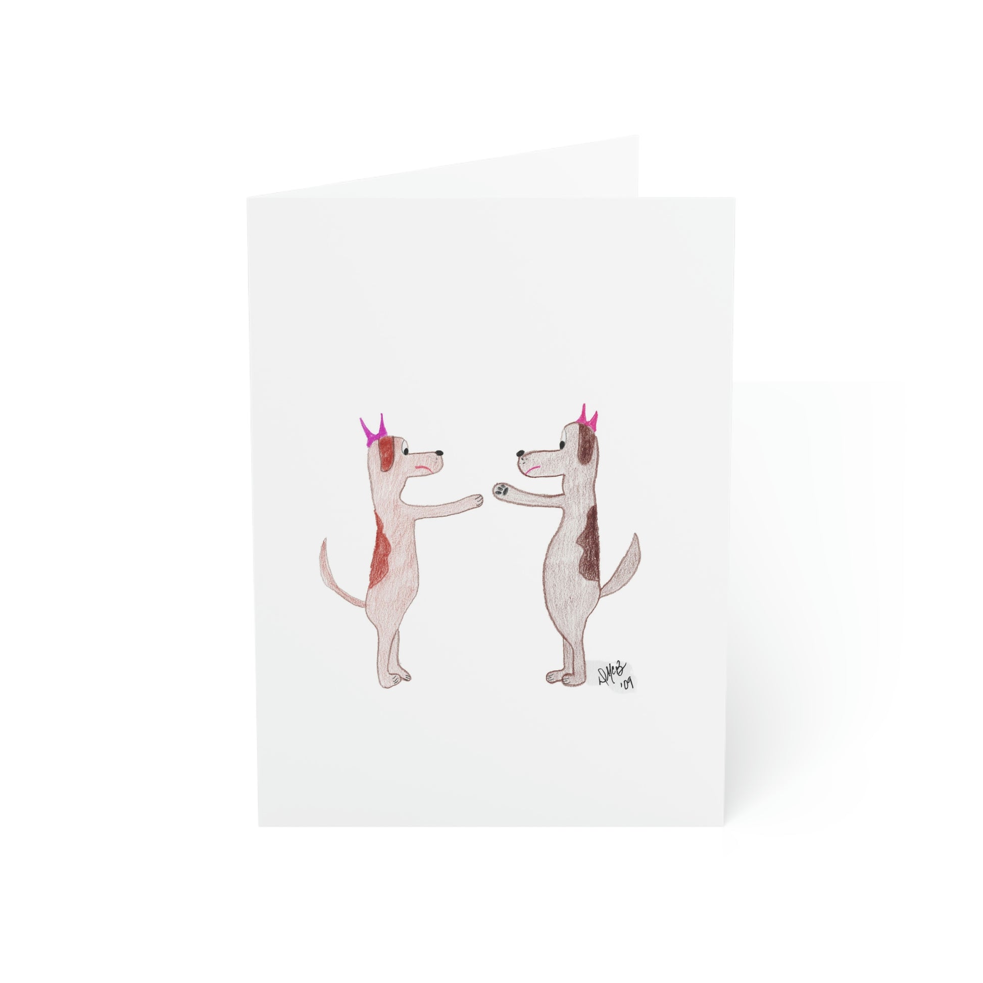 5x7 portrait greeting card – Do You Ever Have Days When You Just Want to Bitch Slap Somebody? Two female dogs face off in a stance to slap one another. They don't look very happy. We all have days like this; send this card to someone who needs the lift and the chuckle. Original drawing is colored pencil on paper, scanned in and placed on the card.