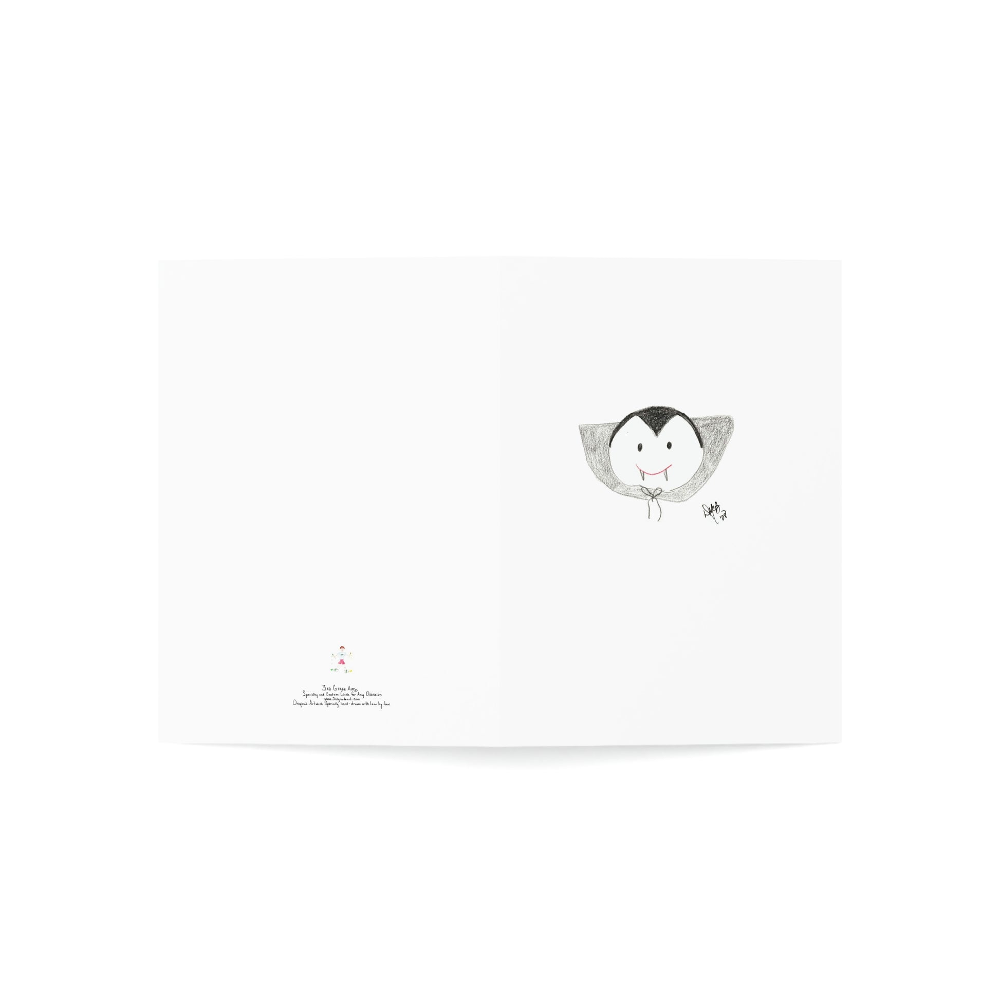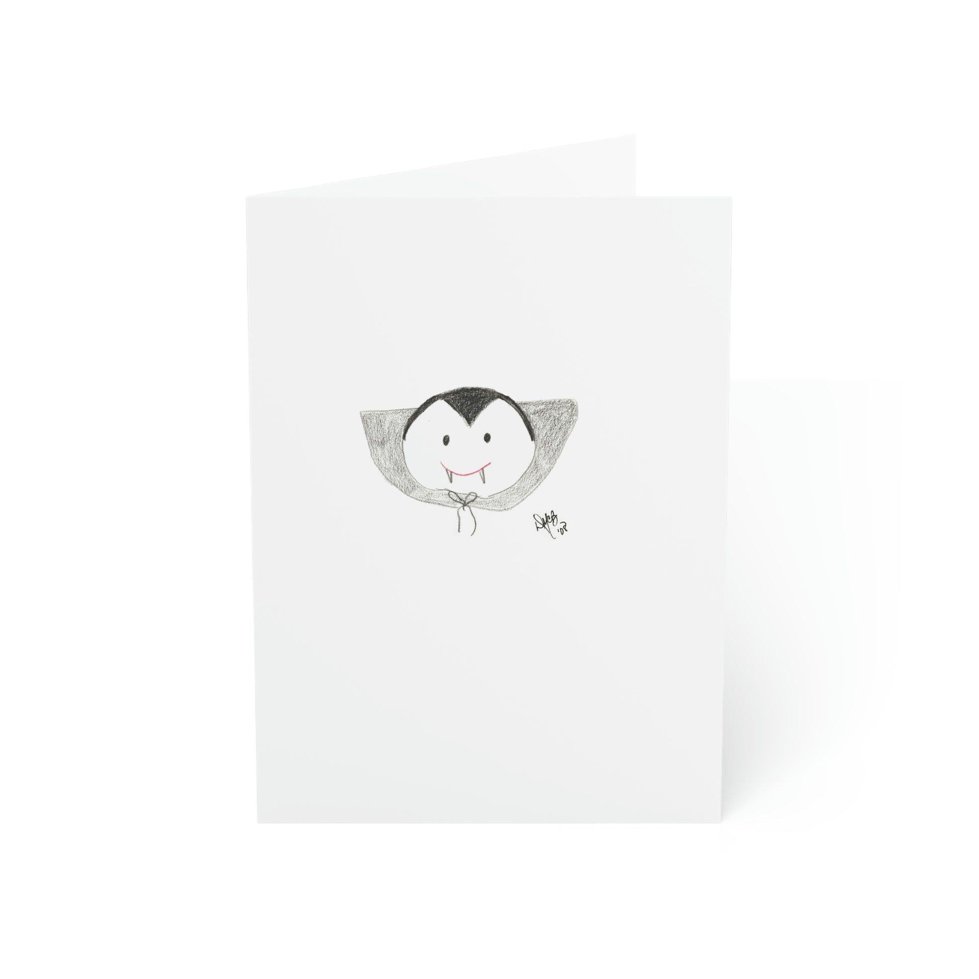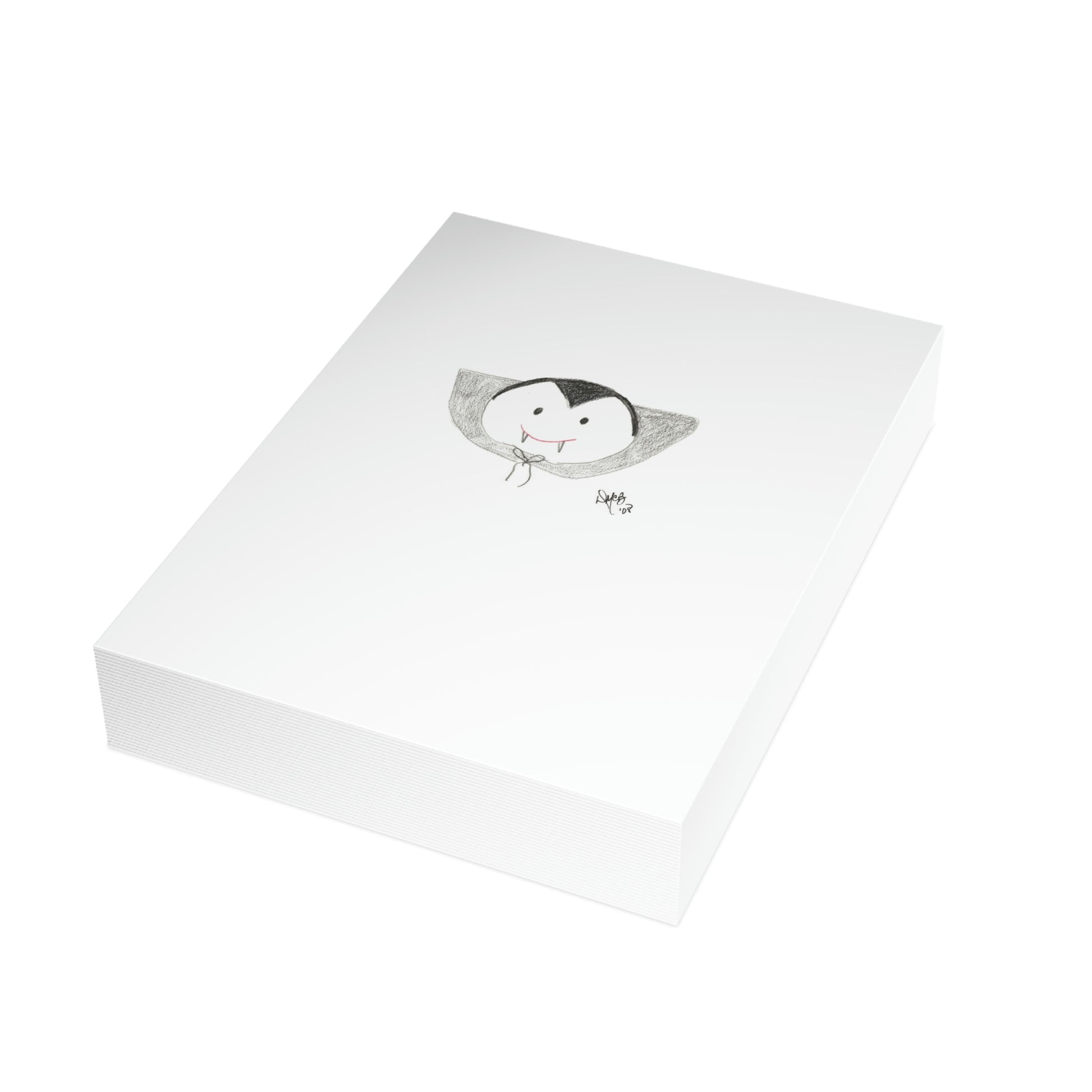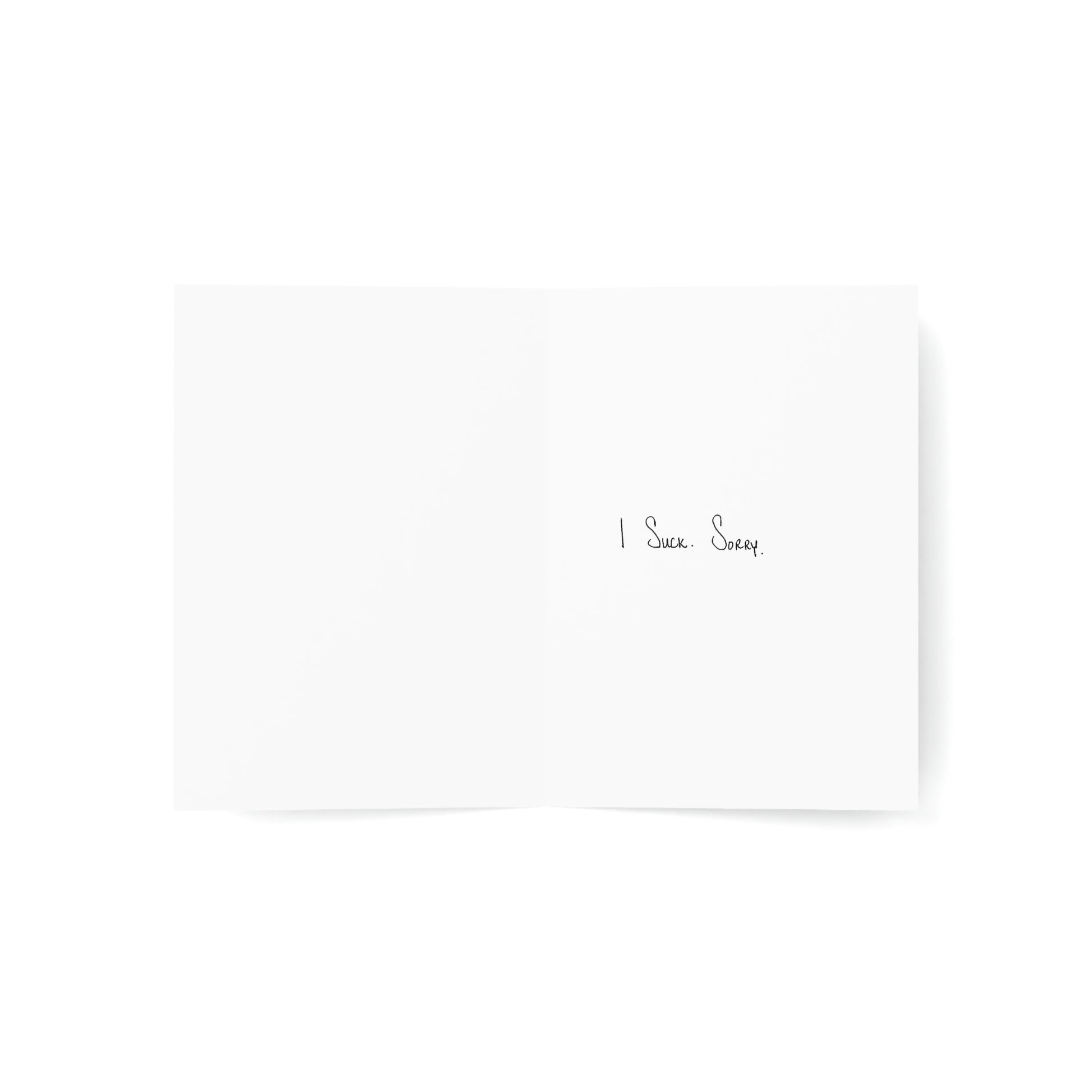 5x7 portrait greeting card – I Suck. Sorry. A vampire admits his/her shortcomings. A simple drawing for a simple message - an apology for...whatever. Missed birthday? You betcha. Wouldn't help hide a body? Okay. Ghosted someone on a meet-up? You're covered. You killed their pet bearded dragon? May want to put some flowers on that one (WITH the card, of course!). Original drawing is colored pencil on paper, scanned in and placed on the card.
