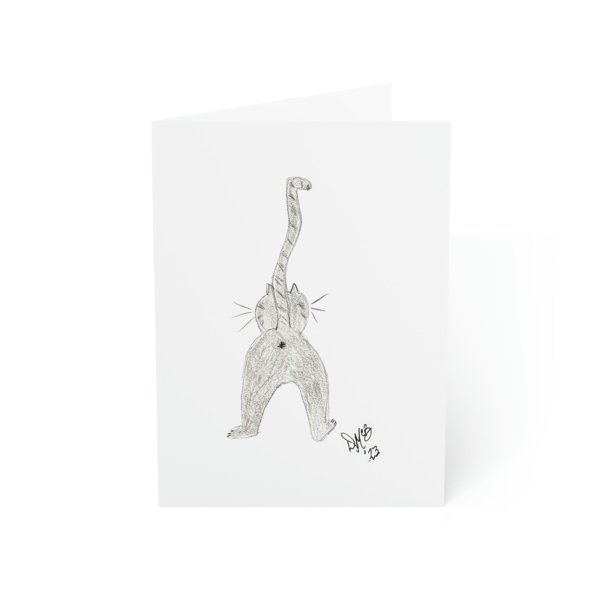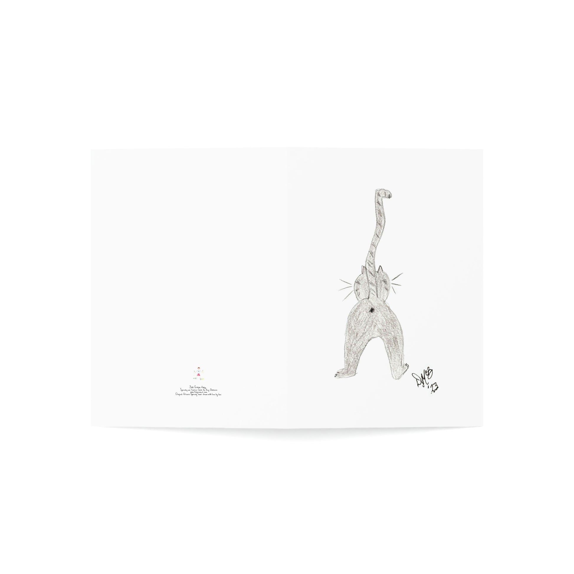 5x7 portrait greeting card – Sorry I've Been a Catshole - A cat showing is best side allows you to apologize to someone for being kind of a jerk. Once in a while we need to admit to being not a stellar human being, and what better way than saying you've been an a*hole (or in this case, a cat's hole)? You should probably buy two, just in case you have more than one person you need to apologize to. Original drawing is colored pencil on paper, scanned in and placed on the card.