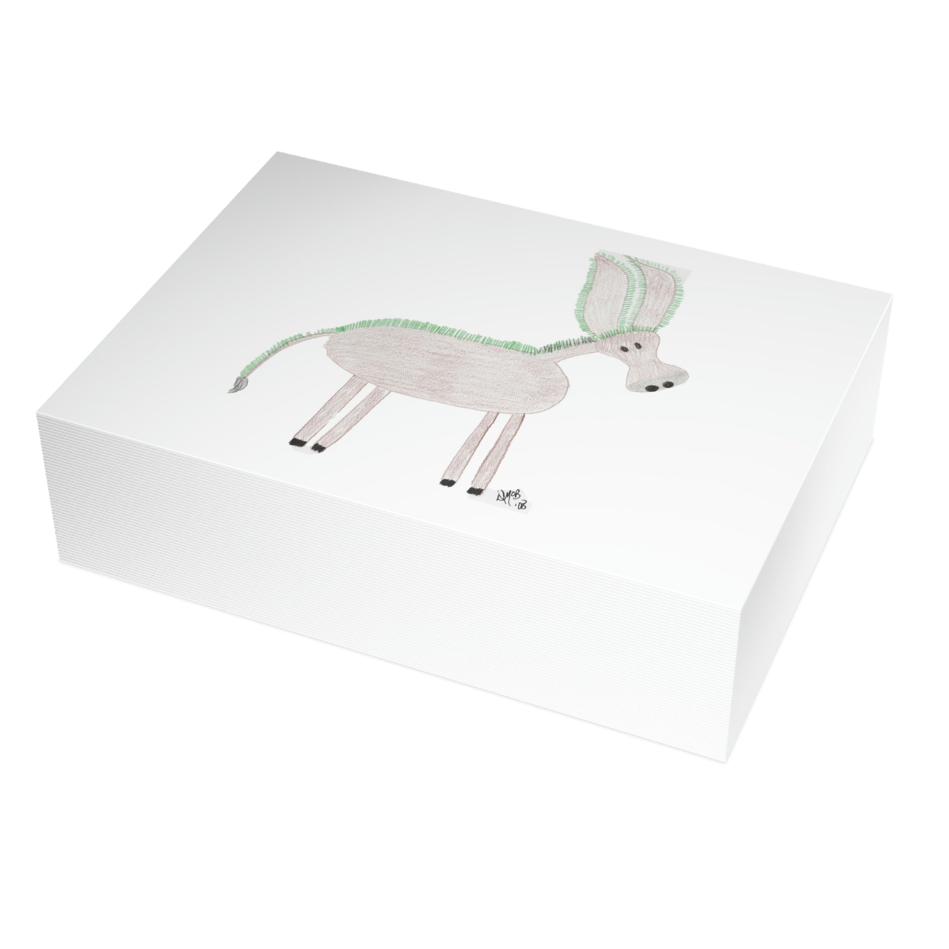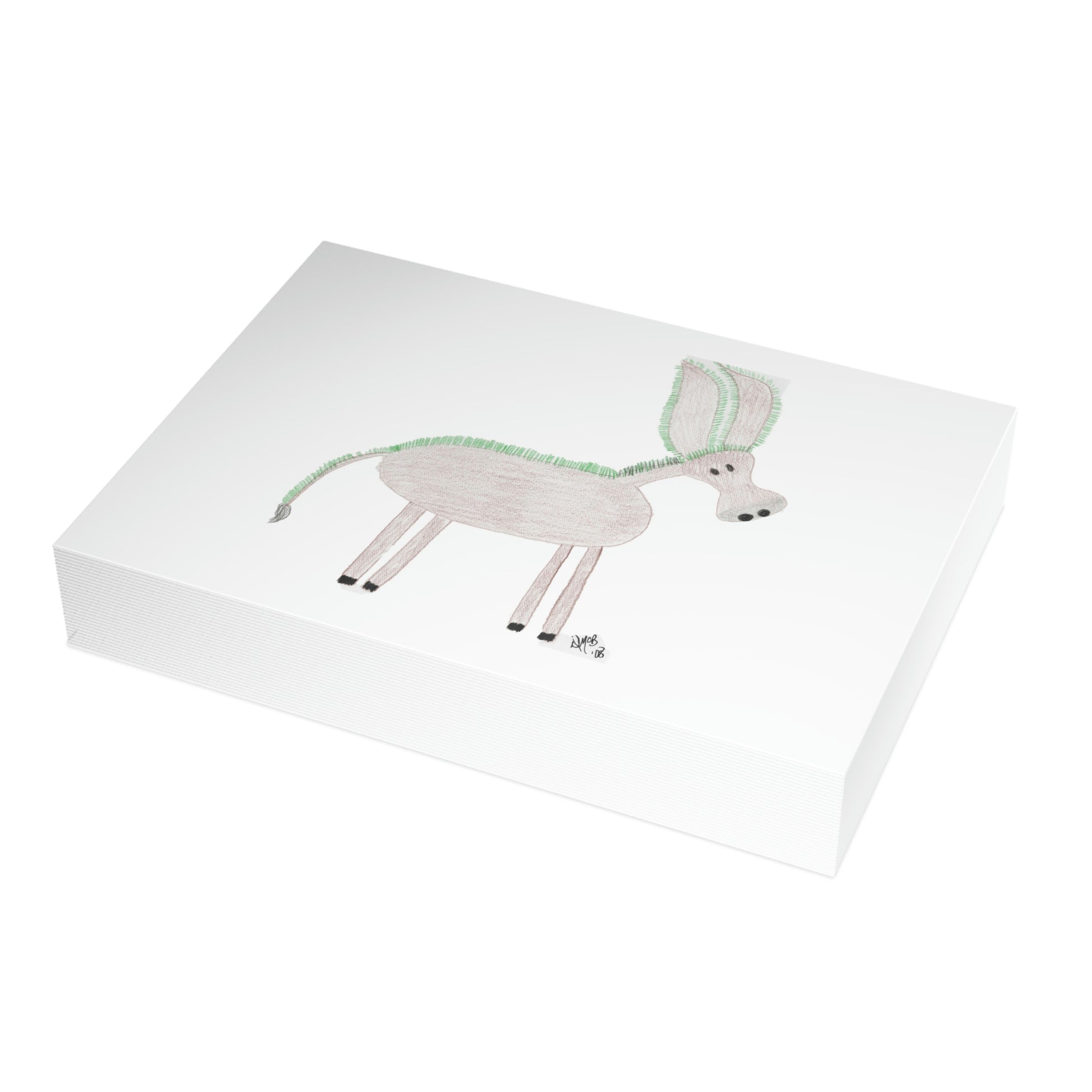 5x7 landscape greeting card – Grassy Ass (Donkey) - Donkey with grass growing on it. Send your thanks/"gracias" to someone who has done you a kindness. You know you want to thank someone for something - drop this one into your cart! Or buy a few to send out when you find yourself in need of a quick thanks! Original drawing is colored pencil on paper, scanned in and placed on the card.
