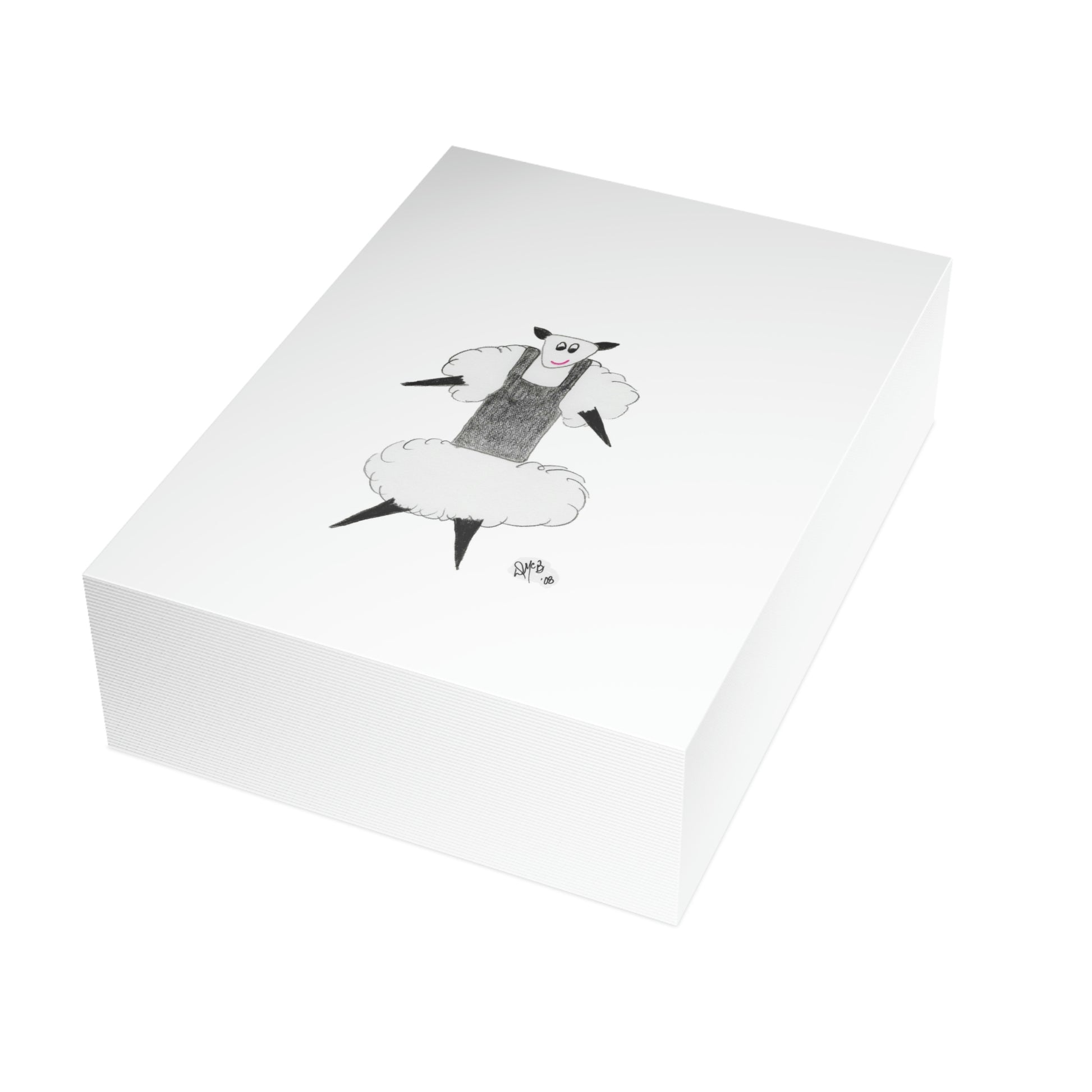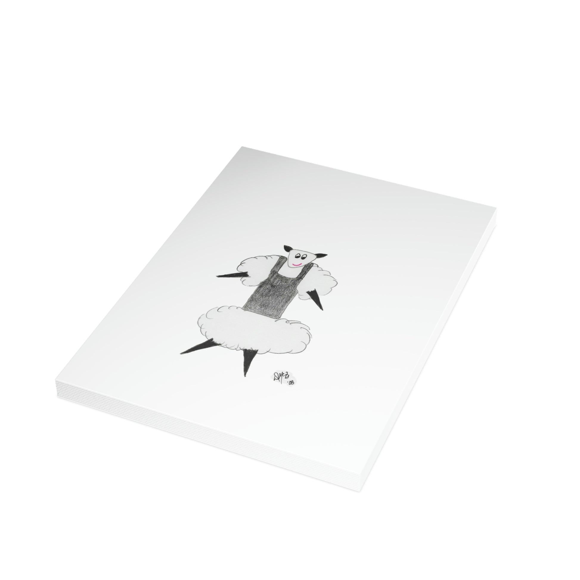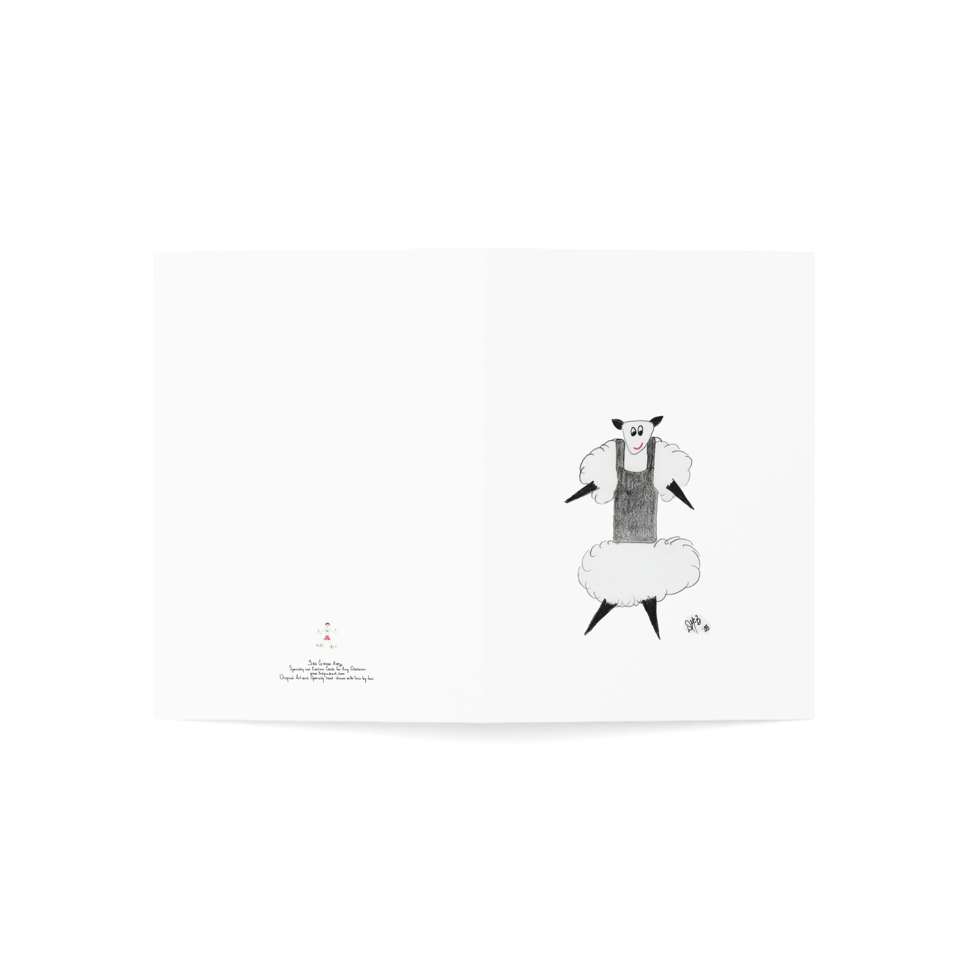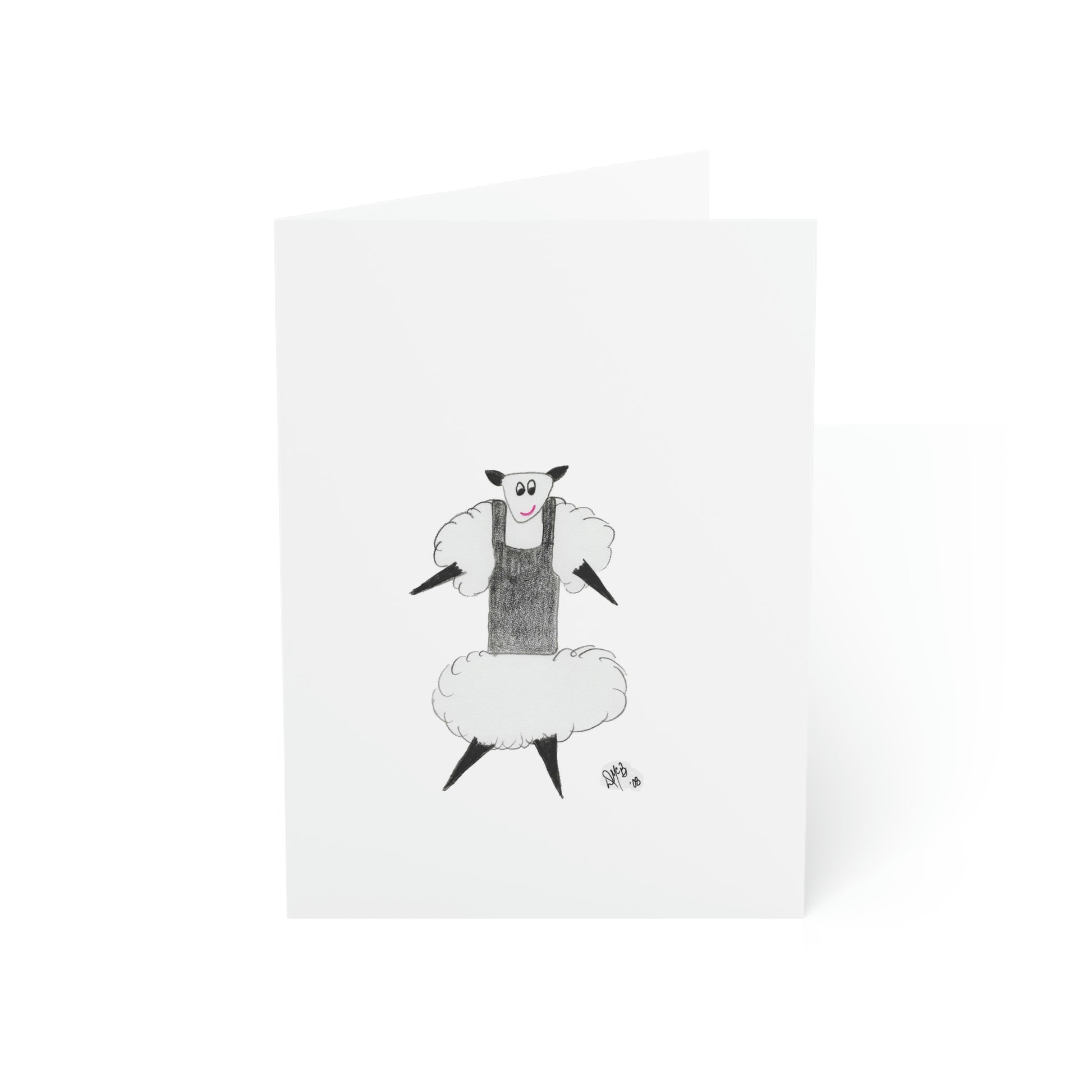 5x7 portrait greeting card - Sheep wearing a tank top - Tank Ewe. Say Thanks to someone in an offbeat fashion! You know I love my sheep! Original drawing is colored pencil on paper, scanned in and placed on the card. Can be used for Valentine's Day, general greeting for a friend, etc.